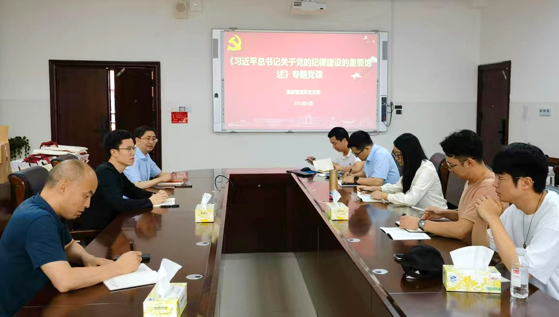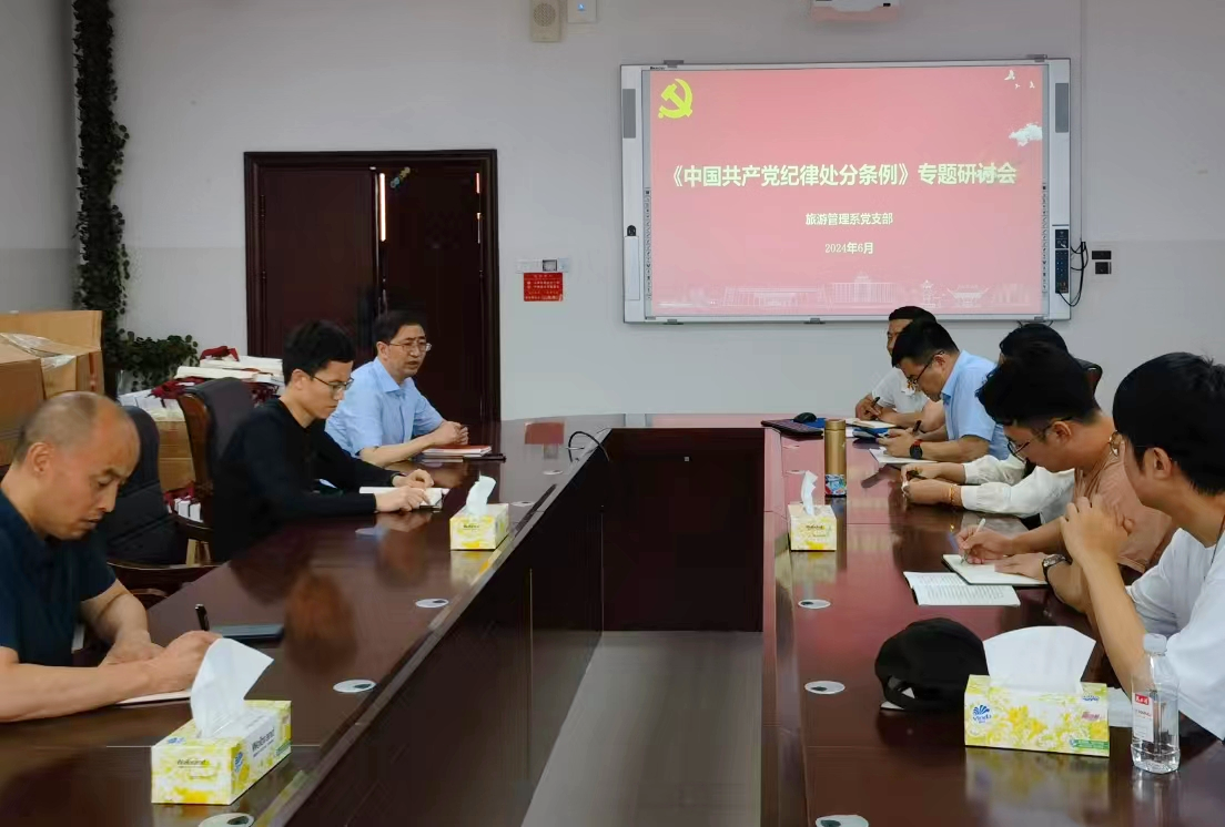 6月18日,旅游管理系教工党支部在中和楼233会议室召开党纪学习教育专题学习研讨会,落实学校、公司党委关于党纪学习教育的部署。会议由支部书记郑群明主持。