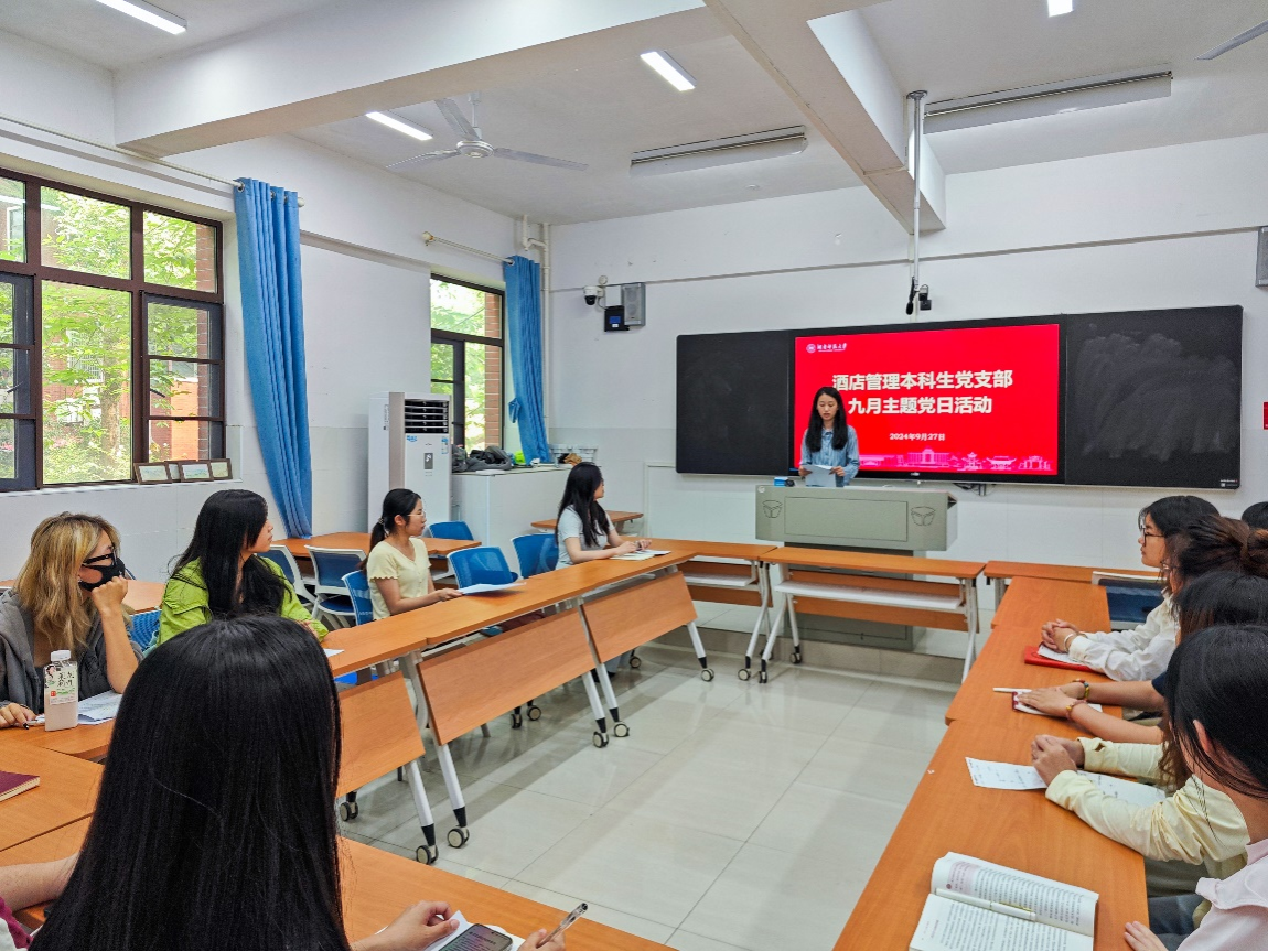 9月27日,酒店管理专业本科生党支部开展以党纪学习为主题的主题党日活动,支部副书记马游游主持。