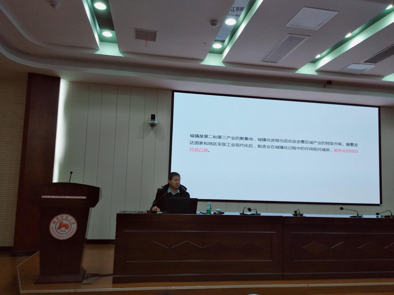 (通讯员 李倩)12月21日晚,首都师范大学申玉铭教授应邀来公司讲座,在中和楼234报告厅作题为“服务业地理研究进展”的学术讲座。讲座由经理王兆峰教授主持。