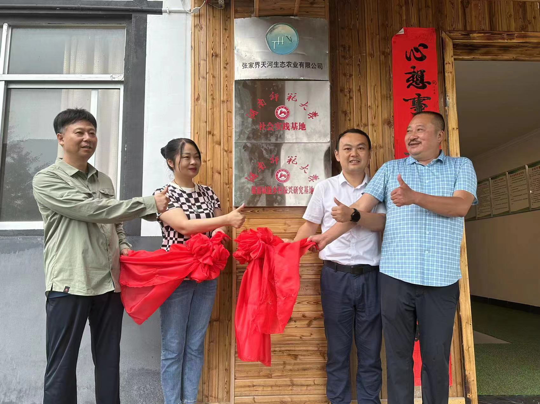 为加强产学研融合,推进校企合作育人实践,7月5日,明陞m88官方网站社会实践基地、旅游赋能乡村振兴研究基地在桑植县天河农庄揭牌,明陞m88官方网站经理王兆峰、副书记廖欢、桑植县副县长胡辉、张家界天河农业有限公司总经理张云峰共同为基地揭牌。
