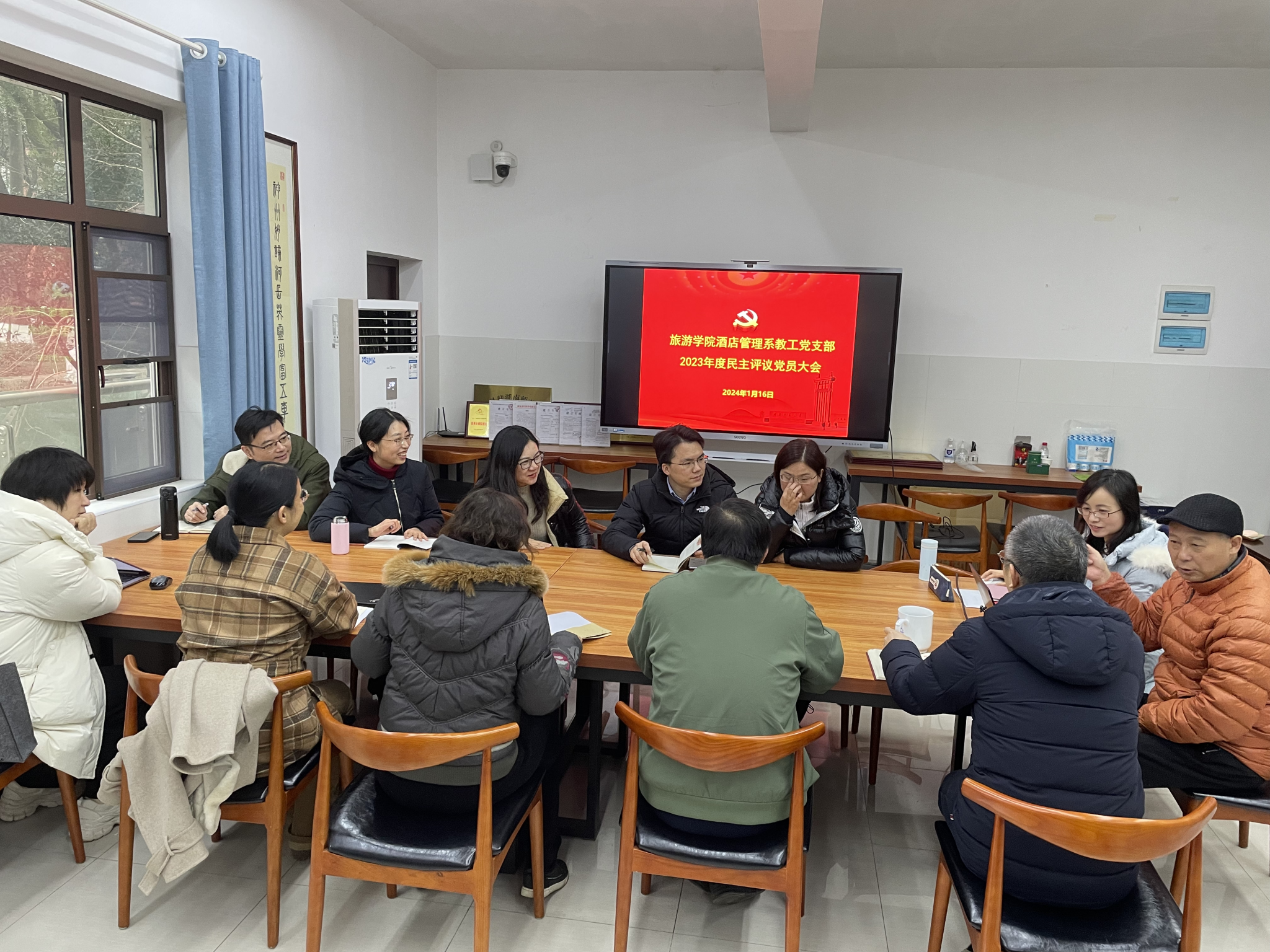 1月16日下午,酒店管理系教工党支部在中和楼215会议室举行支部书记述职暨2023年度民主评议党员会议。学院经理王兆峰到会指导,会议由支部副书记程慧主持,支部全体党员参加了会议。